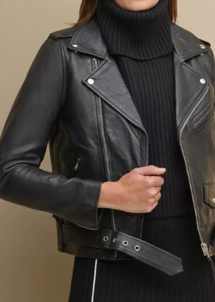 Women Biker Leather Jacket – Black – Full Length